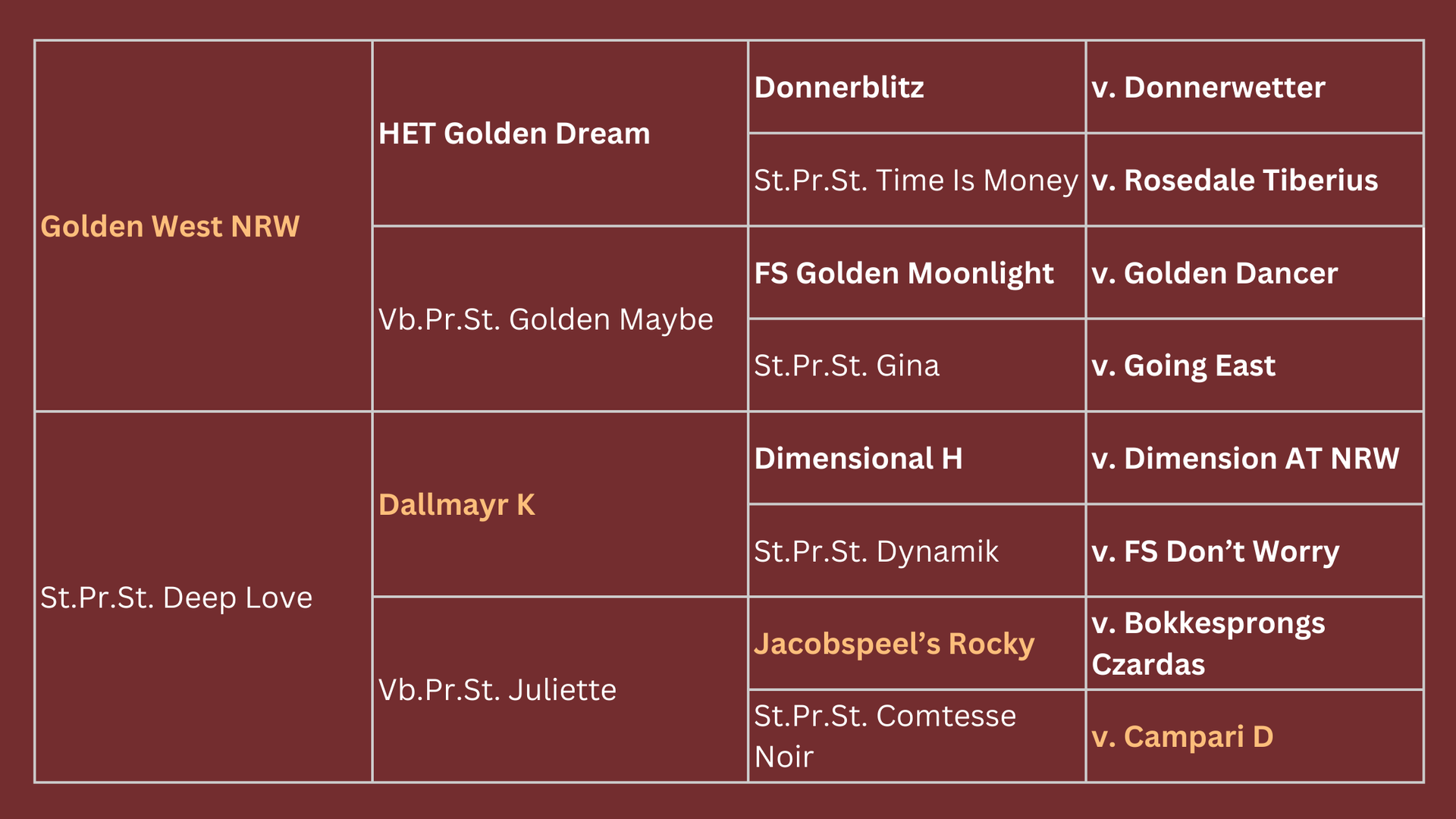 Mit Good Times kommt ein exquisiter Youngster mit dem herausragenden Blut des legendären Golden West NRW wieder zu uns auf die Station! Die Kombination mit dem Ausnahmevererber Dallmayr K hat zu Good Times Qualität beigetragen.